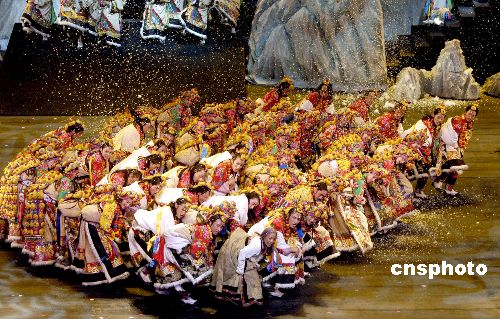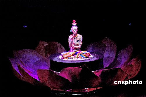 10月23日,杨丽萍扮演藏族女神荷花度母。当日,由著名舞蹈家杨丽萍和藏族歌手容中尔甲主演的大型藏族原生态歌舞乐《藏谜》在上海大剧院上演。中新社发 董鸿景 摄
