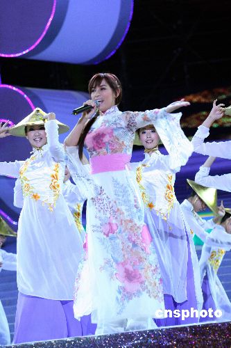 十月二十八日晚,第九届南宁国际民歌节暨第四届中国—东盟博览会开幕式晚会在广西南宁举行。东南亚性感“天后”范菲蓉演唱节奏明快的越南歌曲《难忘的黑马》,全场歌迷为之雀跃。中新社发 曾德军 摄