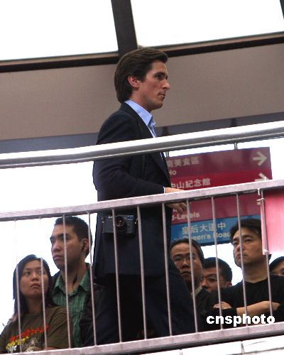 耗资十八亿港元的美国好莱坞巨片《蝙蝠侠黑夜之神》十一月九日在香港中环电梯拍摄取景,男主角基斯顿比尔在拍摄中卸下太阳镜露出真容,旁边数百群众演员配合演出,如人潮般的观众被阻隔在天桥下翘首观看。该片一连七天在香港取景,除地面街景外,更每日派出两架直升机在港岛上空拍摄建筑及维港夜景风貌。中新社发 王丽南 摄