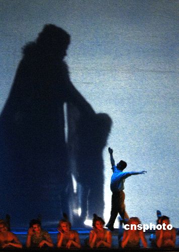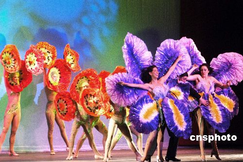 十一月十三日晚,美国著名百老汇音乐剧《42街》在北京隆重首演,演出运用舞美光效演绎光影爱情。中新社发 廖攀 摄