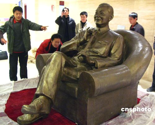 一尊重700多公斤的梅兰芳铜像于11月22日夜由深圳运抵北京,安置于梅兰芳大剧院的大厅中央。投资2亿多元人民币修建的梅兰芳大剧院业已竣工,并将于11月28日正式挂牌开业。梅兰芳先生(1894-1961)是中国戏曲艺术大师,杰出的京剧表演艺术家。该铜像由中国国家京剧院监制,深圳市礼仪之邦文华发展公司出品。中新社发 邹宪 摄