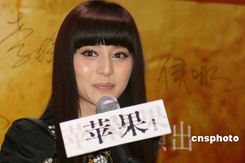 11月26日,电影《苹果》在北京举行首映仪式,导演李玉、女主角范冰冰和男主角佟大为出席首映庆典。中新社发 一可 摄