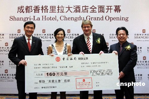 12月10日,著名影星章子怡出席成都香格里拉大酒店开业慈善活动,帮助该酒店启动为“关爱儿童”组织所设的捐助计划,共捐出了人民币160万元。2001年以来,“关爱儿童”组织在成都已成功地为140名孤儿找到了寄养家庭,并一直与成都儿童福利院保持着密切的合作。中新社发 陈孟 摄