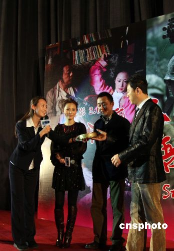 12月17日晚,《大电影2.0》在北京举行首映式。首映结束后,该片导演阿甘携郭涛等主要演员与影迷见面。12月17日正值郭涛生日,活动主办方为郭涛准备了一份特别的生日礼物——首映式的全部入场券票根、一张观影贵宾卡和一格《大电影2.0》的胶片。中新社发 王昊 摄