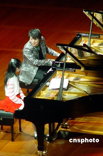 1月4日,钢琴家郎朗在北京中国国家大剧院“大师课”上亲自为琴童示范讲解演奏技巧,这也是国家大剧院开门以来的第一堂“大师课”。郎朗于1月3日、4日连续两晚在国家大剧院音乐厅举行独奏音乐会,并将两场演出以及大师课的全部收入都捐助给国家大剧院“艺术教育基金”。中新社发 应妮 摄