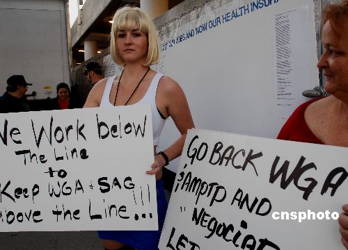 美国编剧协会在金球奖现场抗议示威