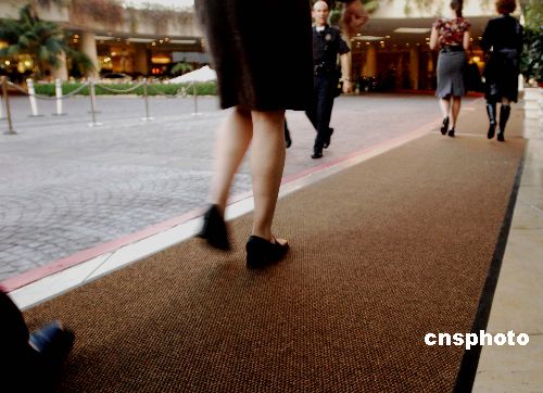美国洛杉矶当地时间一月十三日,第65届金球奖颁奖典礼被迫在美国洛杉矶比佛利山希尔顿酒店改为记者出席的新闻发布会,历史性的没有红地毯。中新社发 贾国荣 摄
