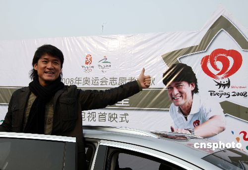 一月二十日,周华健在北京出席反映奥运志愿者的MV音乐电视《我是明星》首发。中新社发 任海霞 摄