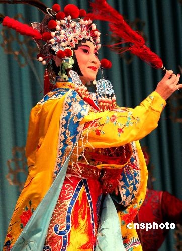 2月21日晚,为欢度一年一度的元宵佳节,著名京剧艺术张派传人薛亚萍在北京梅兰芳大剧院演出传统剧目《状元媒》。京剧名家张学津、叶金援、李红梅等同台献艺。图为薛亚萍在剧中扮演柴郡主。中新社发 钱兴强 摄