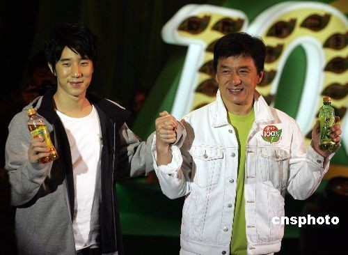 图:成龙、房祖名父子携手代言茶饮料