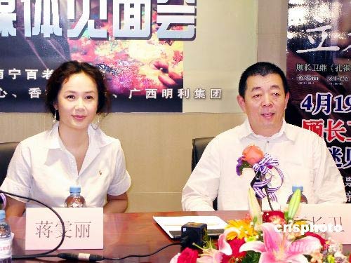 2008年4月19日,顾长卫、蒋雯丽夫妇到广西南宁宣传电影《立春》。有记者问蒋雯丽,拍广告、电视剧和电影,自己最喜欢的是哪一个?蒋雯丽说最喜欢的还是电影,不是因为丈夫顾长卫的关系,而是因为电影是她儿时的梦。中新社发 骆文刚 摄