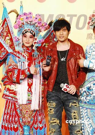 近日,周杰伦在北京某代言活动中现场清唱“刀马旦”。穿皮衣“破裤”亮相的他,秀炫目大钻戒。早先,周杰伦被拍到牵手新女友王思平逛性感内衣店。此番周杰伦颈上的“双星”项链也许即为爱情见证。中新社发 杨可佳 摄