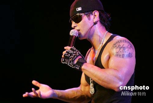 5月16日夜,韩国歌星刘承俊在北京中韩热力歌友会因四川地震改为赈灾义演,众多歌迷到场支持偶像的同时为灾区献爱心。中新社发 杨可佳 摄