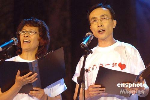 巩汉林金珠参加抗震救灾大型配乐诗文朗诵义演