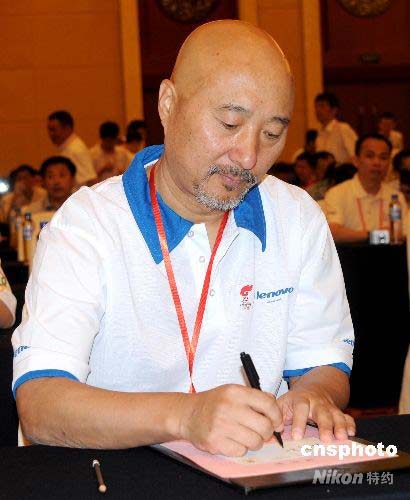 2008年5月26日上午,奥运火炬手、著名影视明星陈佩斯(左二)向四川地震灾区捐款。当天奥运火炬接力南京站传递火炬手、护跑手集结南京,向四川地震灾区默哀、捐款。