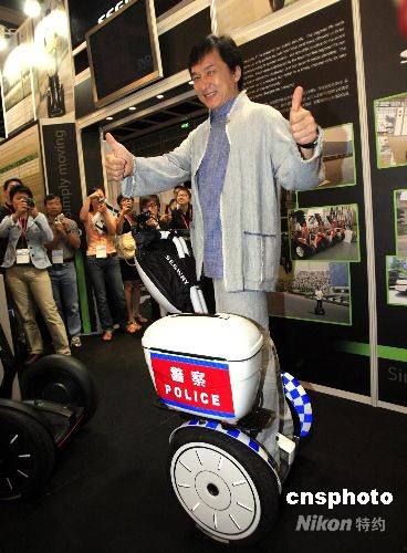 六月四日,成龙在香港会议展览中心开幕的一个展览会上,为外国一款先进的代步车代言宣传。在现场众多记者采访他关于参与四川地震赈灾情况时,成龙表示,未来设想成立一个艺员联盟或协会,不分内地、香港、台湾的地域,将演艺人员的爱心凝聚在一起,为地震灾区重建或海外需要救助的人奉献爱心。中新社发 王丽南 摄