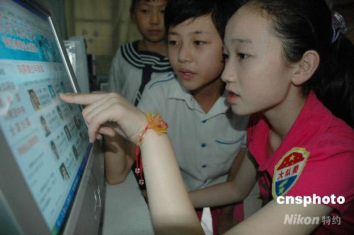 6月17日下午,河南省南阳市第十八小学的少先队员争相在网上为“抗震救灾英雄少年”投票。连日来,该校通过举办“做一个有道德的人”主题班、队会等多种形式,组织小学生学习英雄少年的先进事迹和优秀品德,发动他们利用报纸、网络为“抗震救灾小英雄”投上神圣的一票。 中新社发 熊运彬 摄