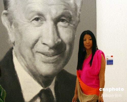 正在北京美术馆举办的“2008·第三届中国北京国际美术双年展”吸引民众。该展览有来自81个国家的747件当代绘画和雕塑作品参展,将持续到8月12日。为迎接北京奥运会,很多作品具有奥运元素。图为摩梭族女性、曾当过演员模特现为作家的杨二车娜姆参观展览。中新社发 富田 摄