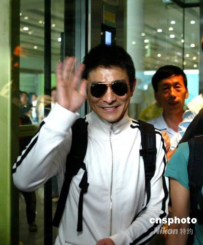 8月5日11时30分左右,香港著名艺人刘德华飞抵北京首都机场,他此次抵京是为了观看北京奥运会。中新社发 富田 摄