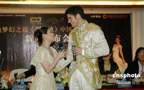 美国百老汇历史上最著名的音乐剧之一《灰姑娘》,即将进行中国巡演上海站的演出,助阵二00八中国上海国际艺术节。九月六日,该剧主演穿着舞台上的华美服饰,在新闻发布会上即兴演绎剧中舒缓的情歌,为上海之行造势。中新社发 南星 摄