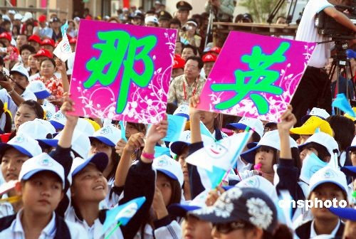 2008年11月16日,那英在第九届中国海南岛欢乐节开幕式上献歌《征服》、《我只喜欢你》,用熟悉的旋律征服了众多歌迷,掀起一阵快乐旋风,并引发现场观众大合唱。那英一身红格子长衣至大腿,以高筒靴、黑手套、网状丝袜,尽现个性与神秘魅力。她说在欢乐节上有自己的许多第一次——第一次到文昌,第一次参加海南欢乐节,第一次在欢乐节上献歌,更是第一次在下午站在海边舞台上演唱。中新社发 善平 摄