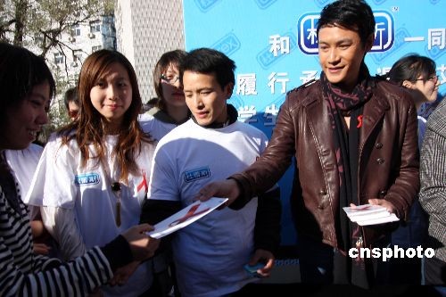 陆毅派传单 为“大学生防艾志愿者联盟”助阵
