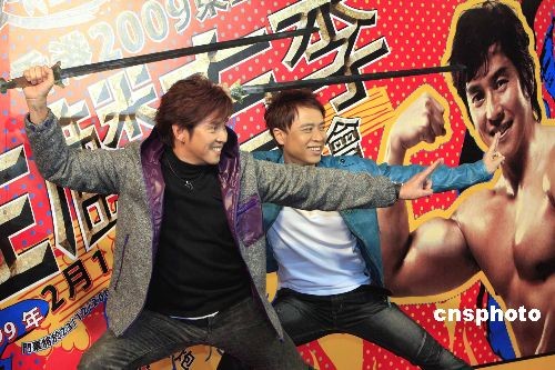 “香港2009东亚运动会左麟右李演唱会”将于明年二月一日至七日举行。十二月十九日,艺人谭咏麟、李克勤在记者会上为演唱会造势宣传。中新社发 张勤 摄