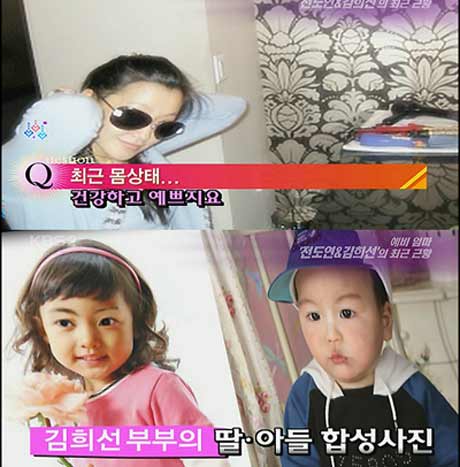 预产期在09年1月的金喜善近期被频频曝光,不光有好友在博客里面公开了她的最新照片,婆婆更对媒体表示将有个小孙女。日前,韩国网络上还出现了号称“金喜善未来宝宝模样”的相关合成照。