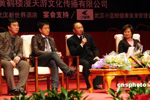1月9日晚,吴宇森携《赤壁(下)》三位演员佟大为、宋佳、张山亮相武汉市武昌洪山礼堂出席《赤壁(下)》武汉首映式。中新社发 李溪 摄