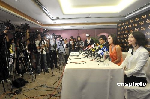 二月二十四日,第三届亚洲电影大奖记者会在香港举行。评审主席杨紫琼、电视广播有限公司电视广播业务总经理陈志云、亚洲电影大奖及香港亚洲电影投资会执行总监何韵明等出席。中新社发 邓庆乐 摄