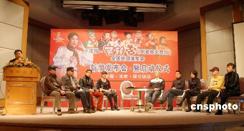 3月7日,“《刘老根大舞台》小沈阳笑转2009”全国巡演演笑会新闻发布会暨启动仪式在北京昆仑饭店举行。据了解,“《刘老根大舞台》小沈阳笑转2009”全国巡演演笑会自3月6日开始,全国巡回演出,共106场,主要演员全部是赵家班,小沈阳表示如没有特殊情况,将参加全部演出。中新社发 龚辉 摄