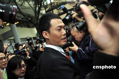 三月十一日,四十一岁的香港艺人谢天华,因酒后驾驶及不小心驾驶,被香港东区法院判监六星期,缓刑一年,同时罚款九千五百港元及停牌一年半。图为谢天华听判后离开法院。中新社发 谭达明 摄