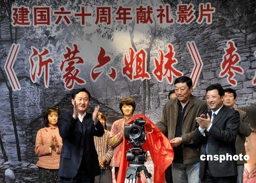 3月17日,电影《沂蒙六姐妹》外景地开拍仪式在山东省枣庄市山亭区举行,这部影片是山东省唯一一部建国60周年献礼片,以1947年闻名世界的孟良崮战役为背景,描写的是一群普通沂蒙女性杰出代表———“沂蒙六姐妹”带领大家在战役打响前无私忘我积极支前的动人故事,讴歌“淳朴美”,讴歌沂蒙精神。中新社发 李宗宪 摄