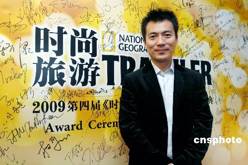 2009年4月2日,《时尚旅游》杂志社举办的旅游金榜颁奖典礼在北京举行,黄健翔为嘉宾出席。中新社发 袁方 摄