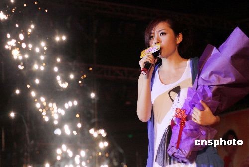2009年4月25日,“动感地带六周年”张靓颖歌友会在湖北襄樊热烈上演,张靓颖在庆祝活动上为众多凉粉演唱了多首经典歌曲。中新社发 李富华 摄