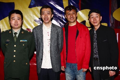 4月28日,中国首部相声喜剧电影——《天下第一串》在北京首映。该影片是一部融相声说、学、逗、唱等元素和中国戏剧手法于一身的喜剧电影。由以《武林外传》的燕小六一角为广大观众所熟知的肖剑、天津相声名家赵津生、刘伟、何涛、李菁、何云伟等主演,这些演员几乎融合了中国所有相声派别,特点鲜明,喜剧味十足。图为(左起)该片主演“燕小六”肖剑、李菁、王斌、赵津生。中新社发 李学仕 摄