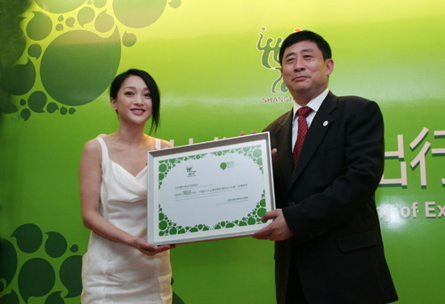 5月5日消息:今天,上海市环境保护局、上海世博会事务协调局、美国环保协会共同举办了“世博绿色出行”启动仪式暨新闻发布会。上海市政府副秘书长、上海世博局局长洪浩为联合国亲善大使、中国著名影星周迅颁发了“世博绿色出行大使”聘书。上海环保局局长张全、上海世博局副局长胡劲军出席启动仪式。