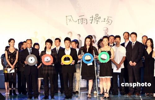 5月7日晚,由中国青少年发展基金会和中国运动员教育基金联手出品,华纳音乐发行,李宁、郭晶晶、金晶、李小鹏、林丹、刘璇、潘晓婷、杨威、杨扬、张怡宁、郑洁、邹凯等12位知名运动员共同献声献影的“五·一二”周年纪念特别单曲《风雨操场》在北京世贸天阶广场举行了MV全国首发仪式。中新社发 杜洋 摄