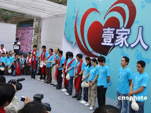 2009年5月10日,在“5·12”汶川大地震震中映秀镇,李连杰携吴彦祖、林心如、钟丽缇、柯以敏、钟汉良、沈星、张杰等众多明星义工,开展中国红十字会壹基金主办的“壹家人,壹起走”大型户外援建灾区公益活动。来自各地的300多名媒体记者、志愿者和明星们一同走完了2公里的灾区路。在半小时的路程中,完成了李连杰成立紧急救援联盟等许多心愿,众明星们的表现令人感动。 壹基金是由国际巨星李连杰发起的立足于中国的国际性公益组织,分别在中国大陆及香港地区、美国和新加坡设立了办事机构。在中国大陆地区,壹基金与中国红十字总会合作,成立了“计划”,致力于传播公益文化,搭建公益平台,以推动全国公益事业的发展。中新社发 善平 摄