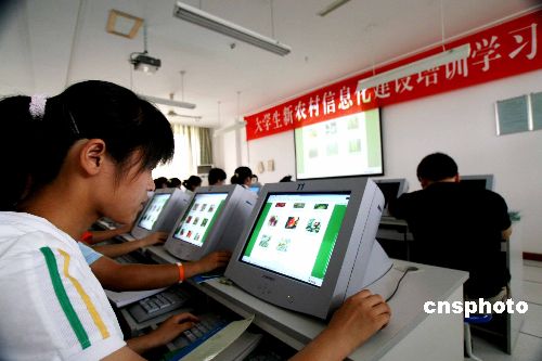 7月5日下午,浙江林学院信息工程学院40多名大学生在农林业专家的指导下,通过网络学习农作物种植技术。据介绍,这40名学生是学院招聘的掌握较强计算机运用能力的志愿者,他们在这里进行农作物种植技术的培训后,将分赴全省各个欠发达地区农村,帮助当地农民掌握通过网络查找农作物种植技术的能力,同时在线回答农民提出的在农作物种植上遇到的技术困难。中新社发 陈胜伟 摄
