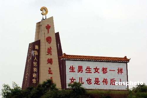 图为生活在南雄珠玑古巷的老人。 图为中国黄烟之乡的南雄高树计划生育宣传牌。
