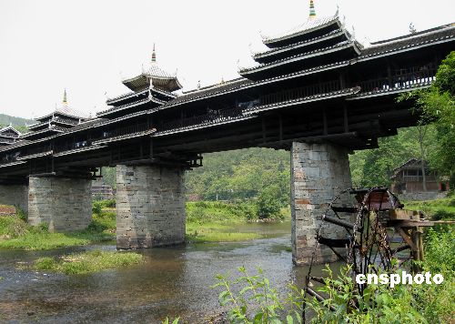 今夏,中国最大的侗族自治县——广西三江侗族自治县的风雨桥吸引众多中外游客前往参观游览。广西三江程阳风雨桥是国家级保护文物,每年都有数十万余中外游客前往参观。中新社发 杨强 摄
