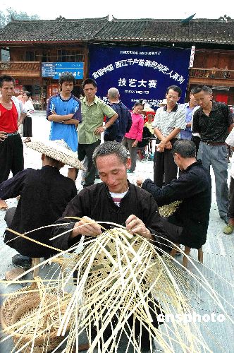 7月15至16日,贵州雷山西江镇举行“首届中国·西江千户苗寨民间艺人系列技艺大赛”,大赛主题为“保护文化遗产,守望精神家园”,共有400多名当地苗族民间艺人参加此次比赛。中新社发 吴如雄 摄