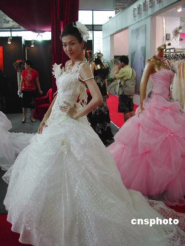 正在上海世贸商城火热举行的第十届中国国际婚纱摄影展上,到处是璀璨奢华的“霓裳魅影”,而来自马来西亚的一家展商独辟蹊径地展示了一款纸制的漂亮婚纱,显示了设计者与众不同的环保意识。中新社发 南星 摄