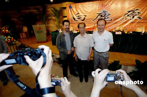 北京人民艺术剧院根据陕西作家陈忠实原著改编的话剧《白鹿原》结束北京演出后,7月9日将移师古城西安,将连演4场。7月3日,该剧主创人员濮存昕和郭达率先抵达西安,出席《白鹿原》西安演出新闻发布会。中新社发 李海军 摄