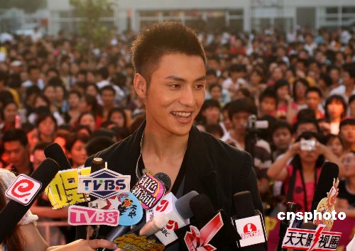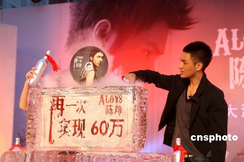7月15日北京建国门外SOHO,陈坤大满贯庆功演唱会如期上演。一曲《幻觉》劲歌热舞后,唱片公司宣布了销售60万张的骄人业绩。最后陈坤使出招牌式的忧郁眼神演唱了《月半弯》,数千坤虫忘情合唱。中新社发 袁方 摄