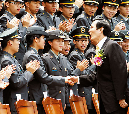 马英九说,军校毕业生将来都是革命军人,不要被人看不起,看轻。将来要壮大自己,保卫别人,要有使命感、荣誉感。