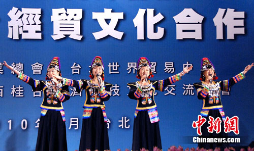 中新网台北7月4日电(廖祖平)中共广西壮族自治区委员会书记郭声琨率领1000余人的广西经贸文化代表团7月1日—7月5日在台湾参访,这是海峡两岸经济合作框架协议(ECFA)签署后大陆第一个赴台的经贸文化代表团。客家人聚居的广西贺州市也由市委书记彭晓春率贺州代表团随广西团一起赴台。7月3日下午,由桂台(贺州)客家文化旅游合作示范区与台湾世界客属总会、广西同乡会联合主办的桂台(贺州)客家文化旅游经贸合作恳谈会在台北举行。