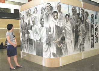 据报道,这幅名为《浩气长流》的巨画,由六个部分组成,分成《故国》、《青天碧海》、《山河岁月》、《血肉长城》、《精神堡垒》、《信义和平》和《祈祷》,创下史上最长画作的纪录。