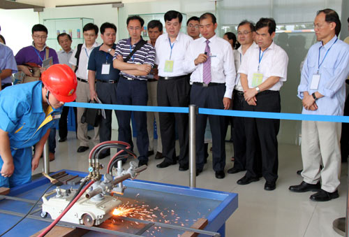 出席第六届两岸经贸文化论坛的台湾代表8日参观广州久泰厂,该厂生产的二甲醚为清洁能源,可作家庭、工业用途,以及取代柴油等。图片来源:“中央社”